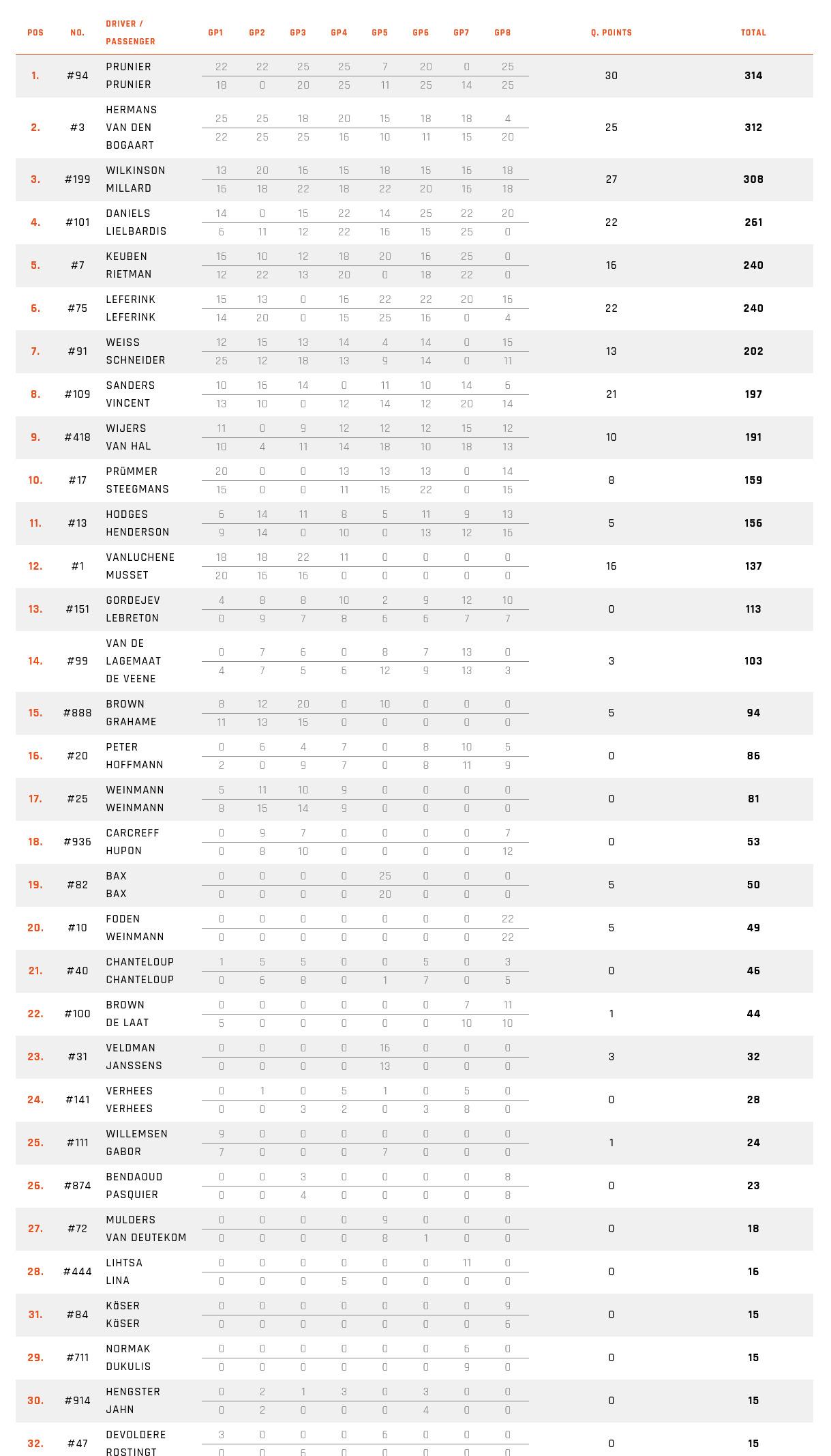 Cata en revanche pour les … ex leaders du championnat Koen Hermans et Ben van den Bogaart avec un week end à 24 points contre 50 pour les tricolores.