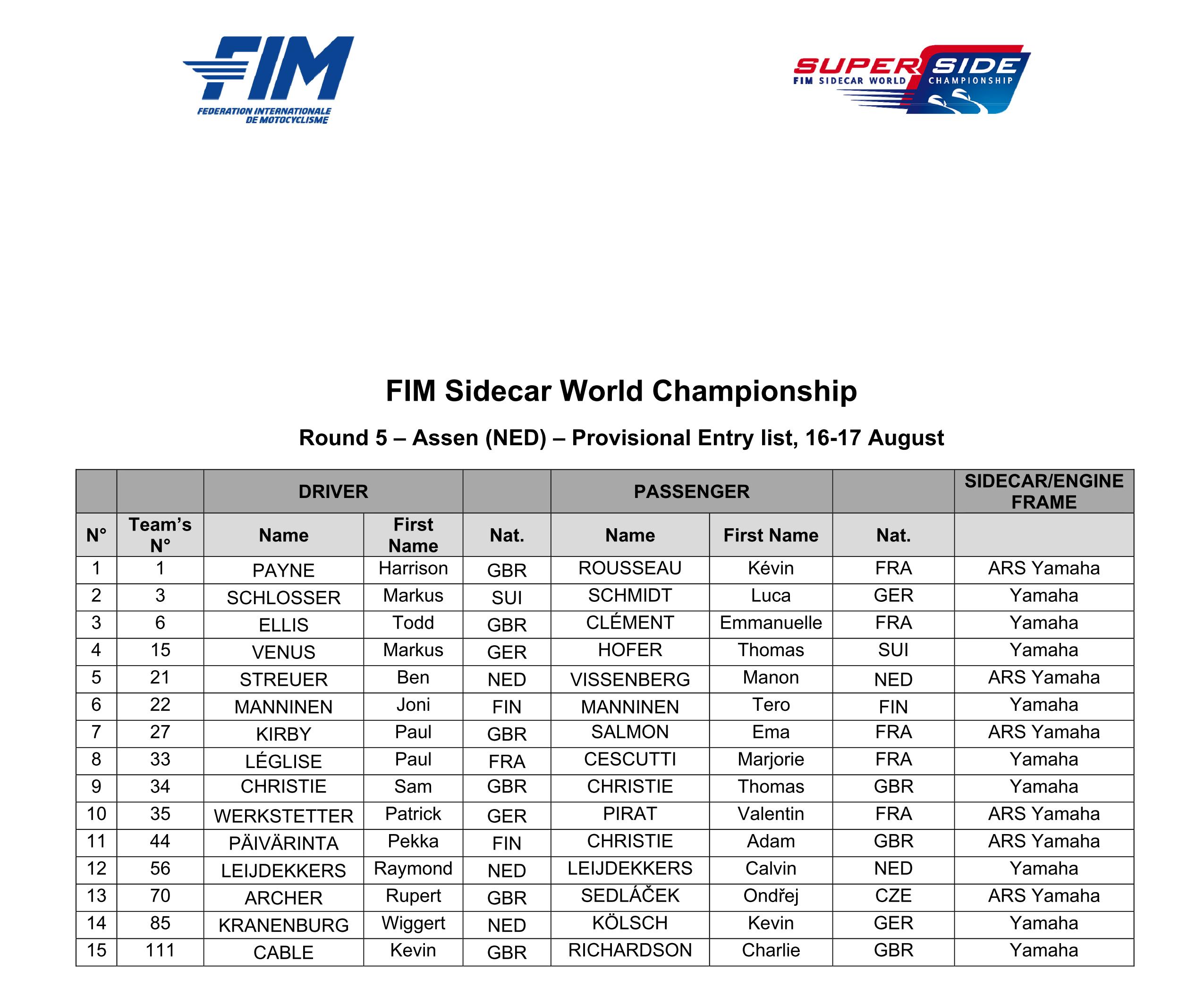 SIDECAR SUPERSIDE – Pays Bas 1, Assen, la présentation et la liste des pilotes