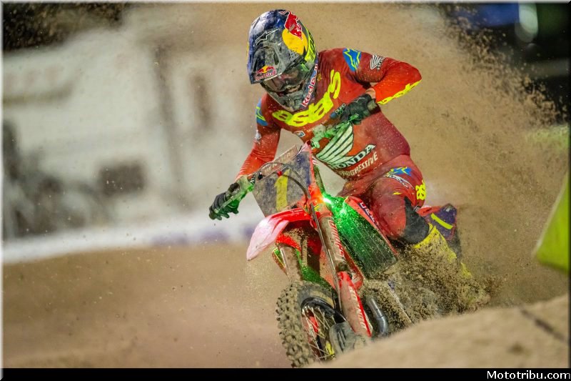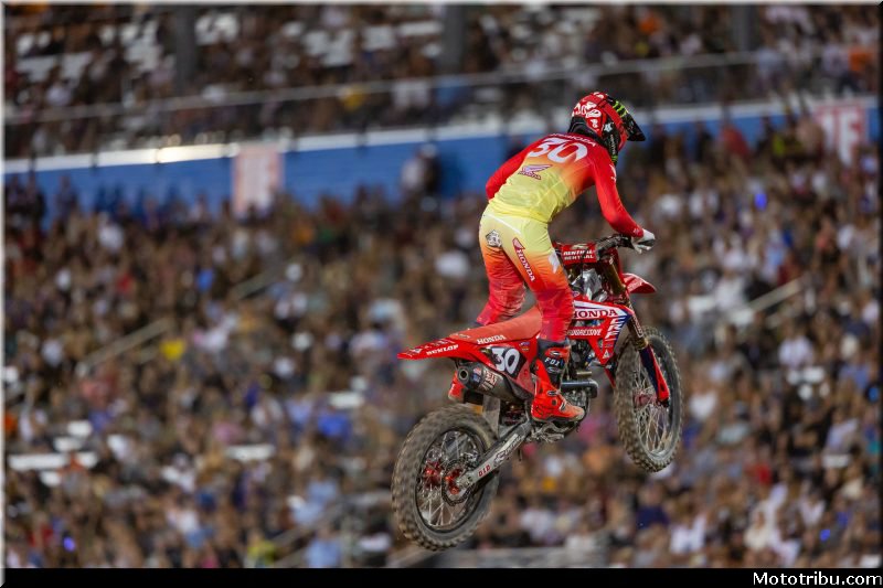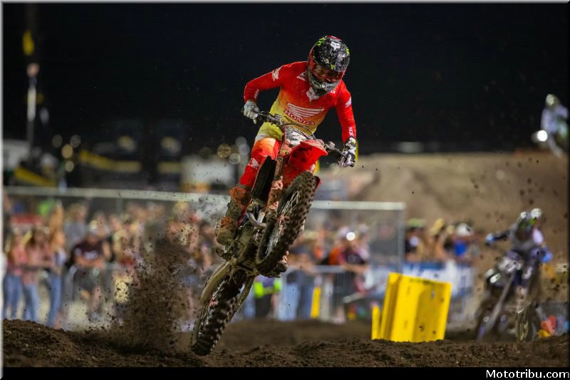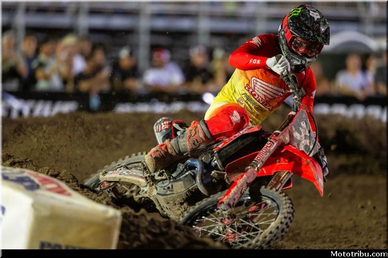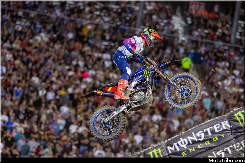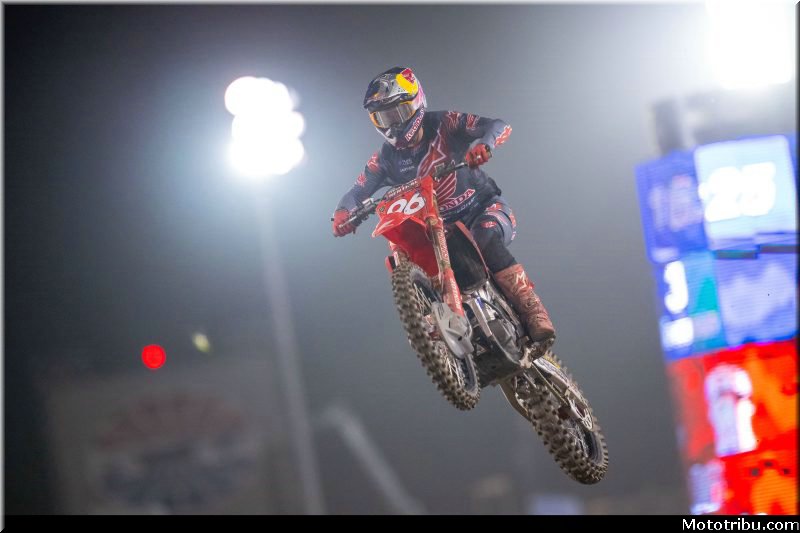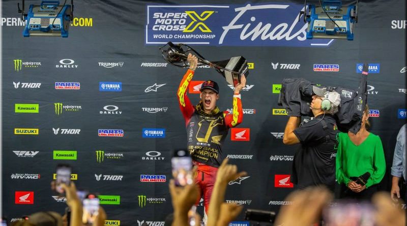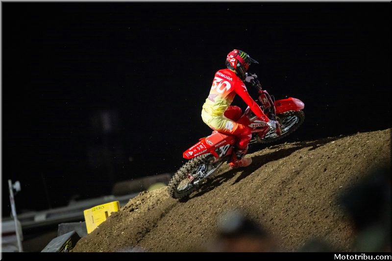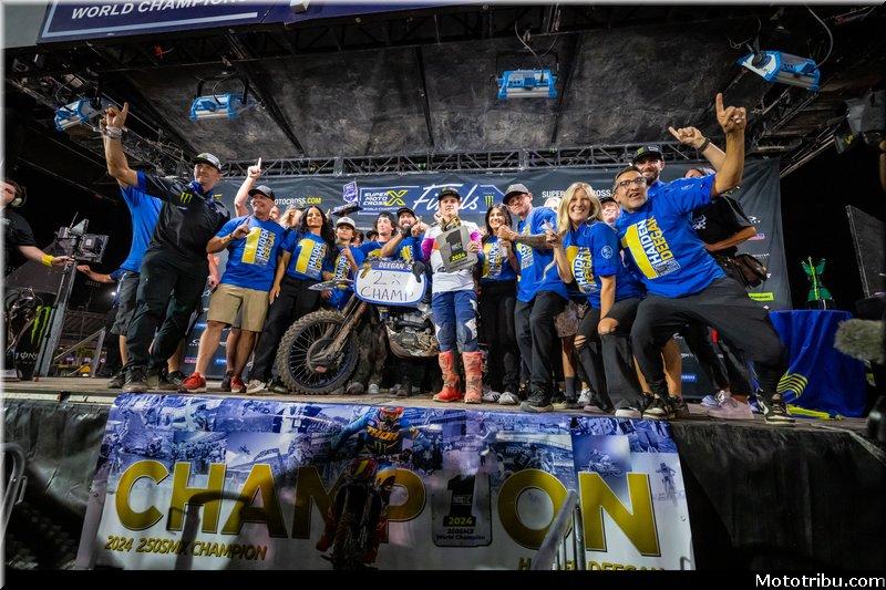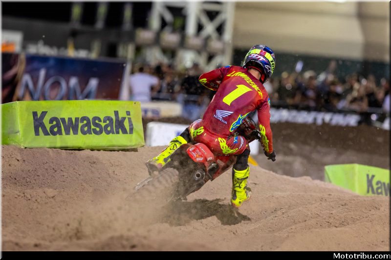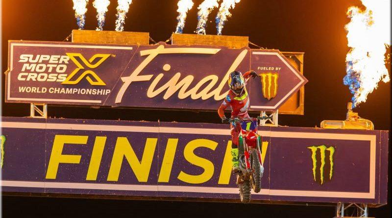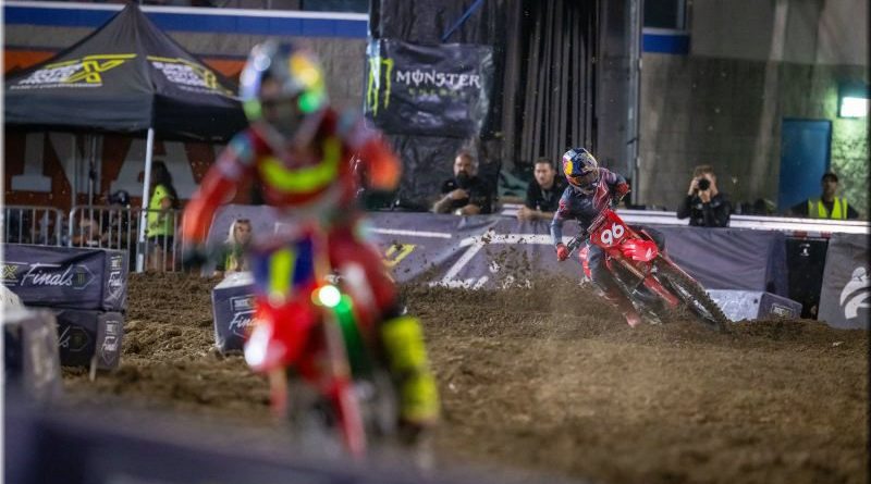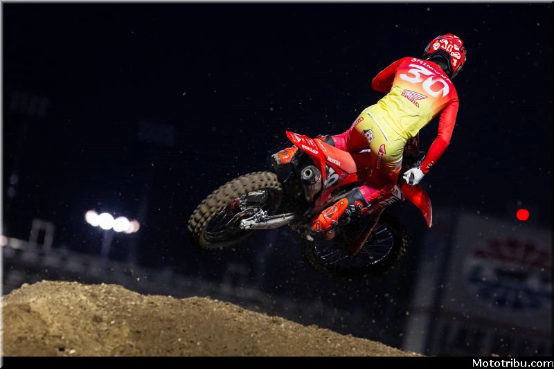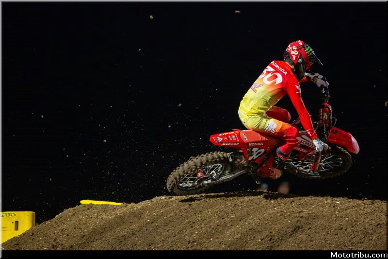 450 – Clap de fin sur la saison de cross US avec cette finale de Las Vegas qui vient décerner une sorte de titre de champions des champions, histoire de faire un peu d’ombre au WSX mondial. C’est donc Jett Lawrence qui s’est imposé confirmant sa bonne condition physique après son abandon de la saison outdoor et sa première victoire lors des playoff de Charlotte. Jett empoche la coquette somme d’1 million de dollars. Son frère Hunter second se contentera de 500 000 et Eli Tomac 3ème de 250 000. De quoi partir en vacance serein pour les trois hommes. Chase Sexton éreinté par sa saison et son titre outdoor a préféré jeter l’éponge dès le début de la première manche. Dylan Ferrandis se classe 13ème.