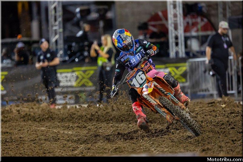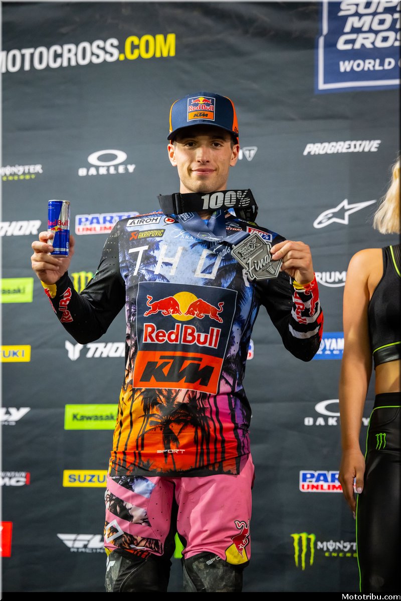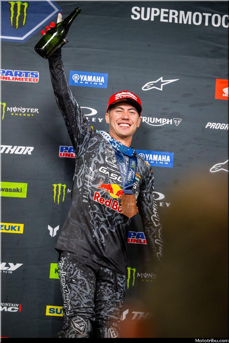 250 – Pierce Brown 2.1 a choisi son jour pour briller et remporter la première viçtoire de sa carrière en pro devant Haiden Deegan 1.2 qui décroche le titre et les 500 000$ qui vont avec. Jordon Smith 5.8 complète le trio de tête. Tom Vialle 3.8 doit se contenter de la 5ème place derrière Jo Shimoda 4.5. Le français termine néanmoins second de ce super mini championnat devant Pierce Brown.