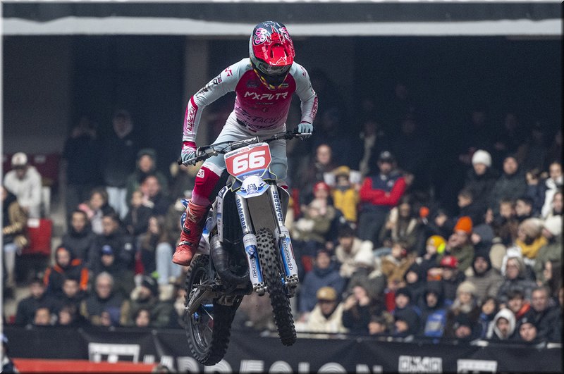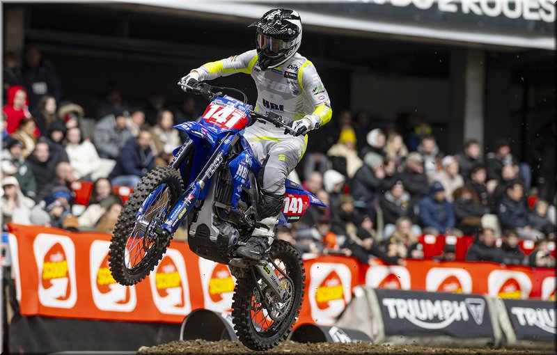 Les flash crépitants et les projecteurs braqués sur le podium final du championnat SX2 ne ramenaient pas le sourire à Jules Pietre – Yamaha TMX pourtant brillant troisième de cette saison mais sérieusement touché en finale au poignet après une chute spectaculaire.