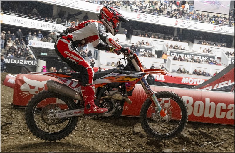 Samedi, les deux hommes remportaient leur demi-finale respectives et se retrouvaient dans l’ultime départ au coude à coude. Michaël Hicks s’envolait immédiatement alors que Calvin Fonvieille pourtant troisième perdait immédiatement du terrain. Le pilote TMX semblait en retrait et glissait dans le classement jusqu’à la sixième place. Pris par l’enjeu, excès de prudence … il était méconnaissable en piste.
