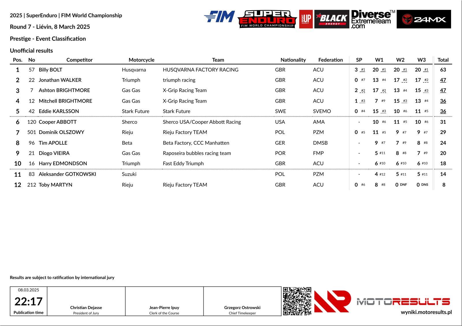 La septième et dernière manche du Championnat du Monde FIMSuperEnduro 2024/2025 à Liévin, en France, a vu Billy Bolt terminer en beauté en remportant la SuperPole et les trois courses de la classe Prestige. Pendant ce temps, Marc Fernandez Serra s’est assuré la couronne de la Coupe du Monde Junior en terminant deuxième, et Ramón Godino-Gómez a remporté le titre Youth après une lutte acharnée avec Fraiser Lampkin.