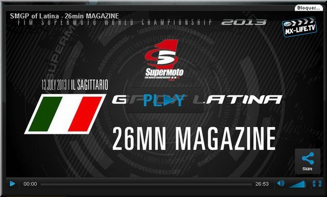 Uncategorized SUPERMOTO – (vidéo) GP de Latina, le magazine 18 juillet 201318 juillet 2013 Adrien 1033 Vues Il vous suffit de vous inscrire gratuitement sur MX-Life TV pour visionner le résumé en 26mn du Grand Prix de Latina Supermoto. le Supermotard sur Mototribu le lien pour visionner le résumé du Grand Prix de Latina (à condition d’être inscrit)