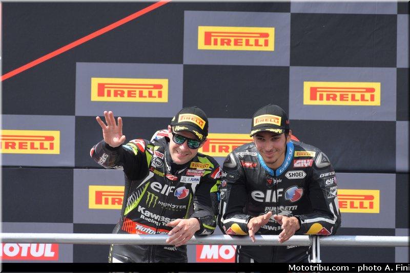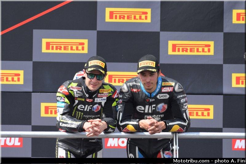 Le pilote Yamaha va bien tenter de repasser la Kawasaki mais sans succès et c’est donc Toprak Razgatlioglu qui monte sur la 3ème marche du jour pour le 1er podium de sa carrière en Superbike.